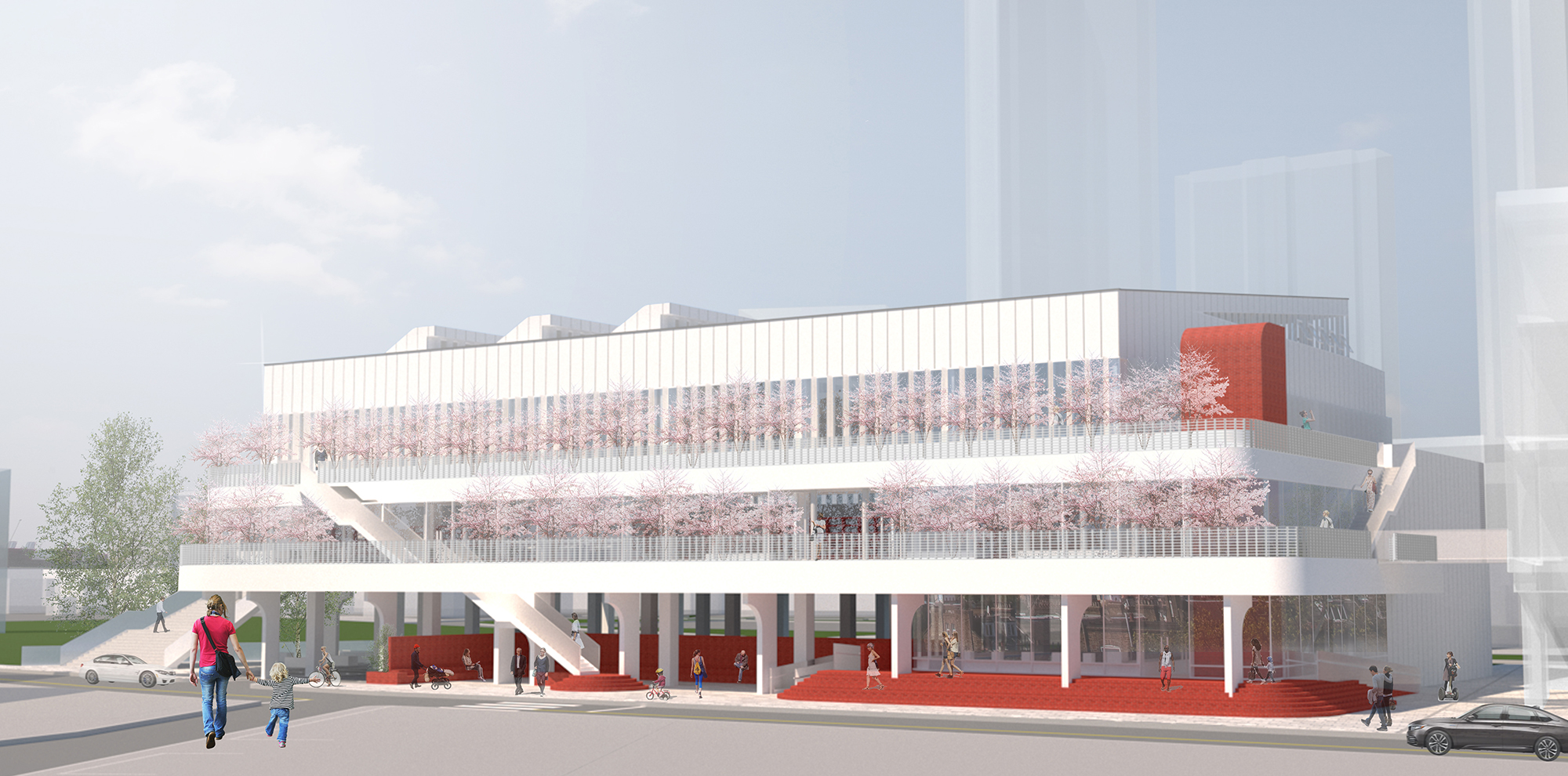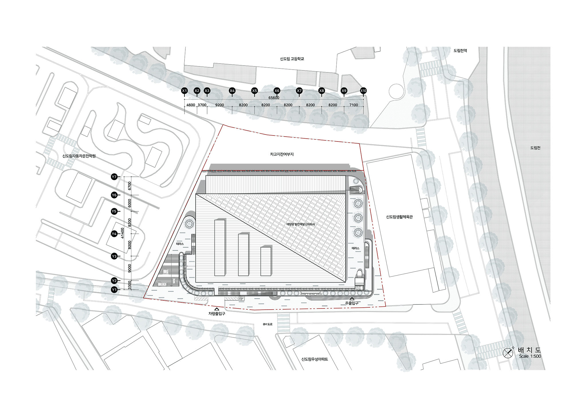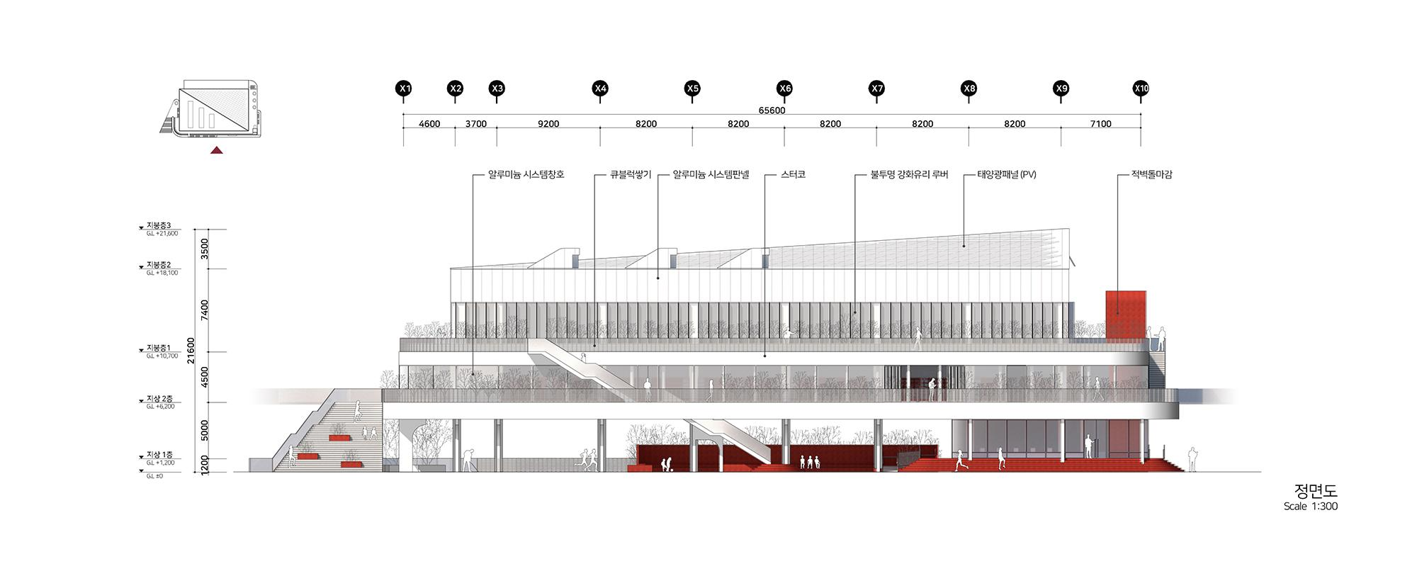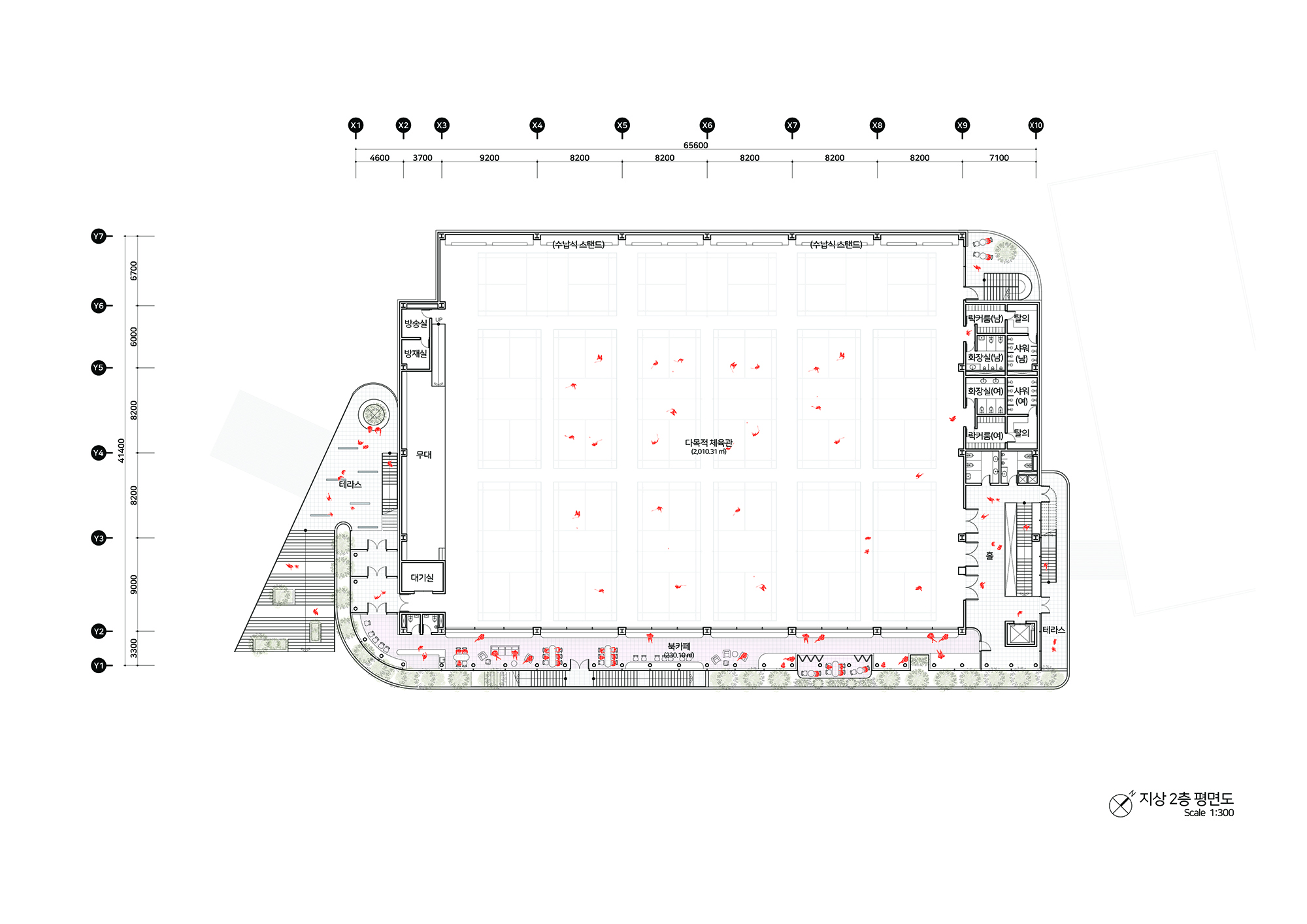 기존 차고지가 이전되면서 남게된 공간에 주민들을 위한 새로운 체육관을 계획을 하는 현상설계였다. 전면부의 좁은 보행로를 확장하고 다양한 진입동선을 만는 것이 주요 계획요소였다. 좁은 차로에 길게 접한 대지로 전면부에 카페 및 녹지공간을 풍부하게 계획하여 새로운 동네 가로를 만들어주고자 했다. 대상지를 기점으로 향후 도서관 등 새로운 공공시설이 들어서는 대상지는 기존에 인접한 수영장과 이를 연결하는 새로운 구심점으로 다양한 연결방식을 담고자했다. 좁은 가로에 면한 대규모 필지에서의 건물의 위치 및 새로운 가로 환경으로서의 입면의 역할에 등에 관해 고민할 수 있었다. 플루토건축사사에서 진행하였던 현상설계 계획안이다.