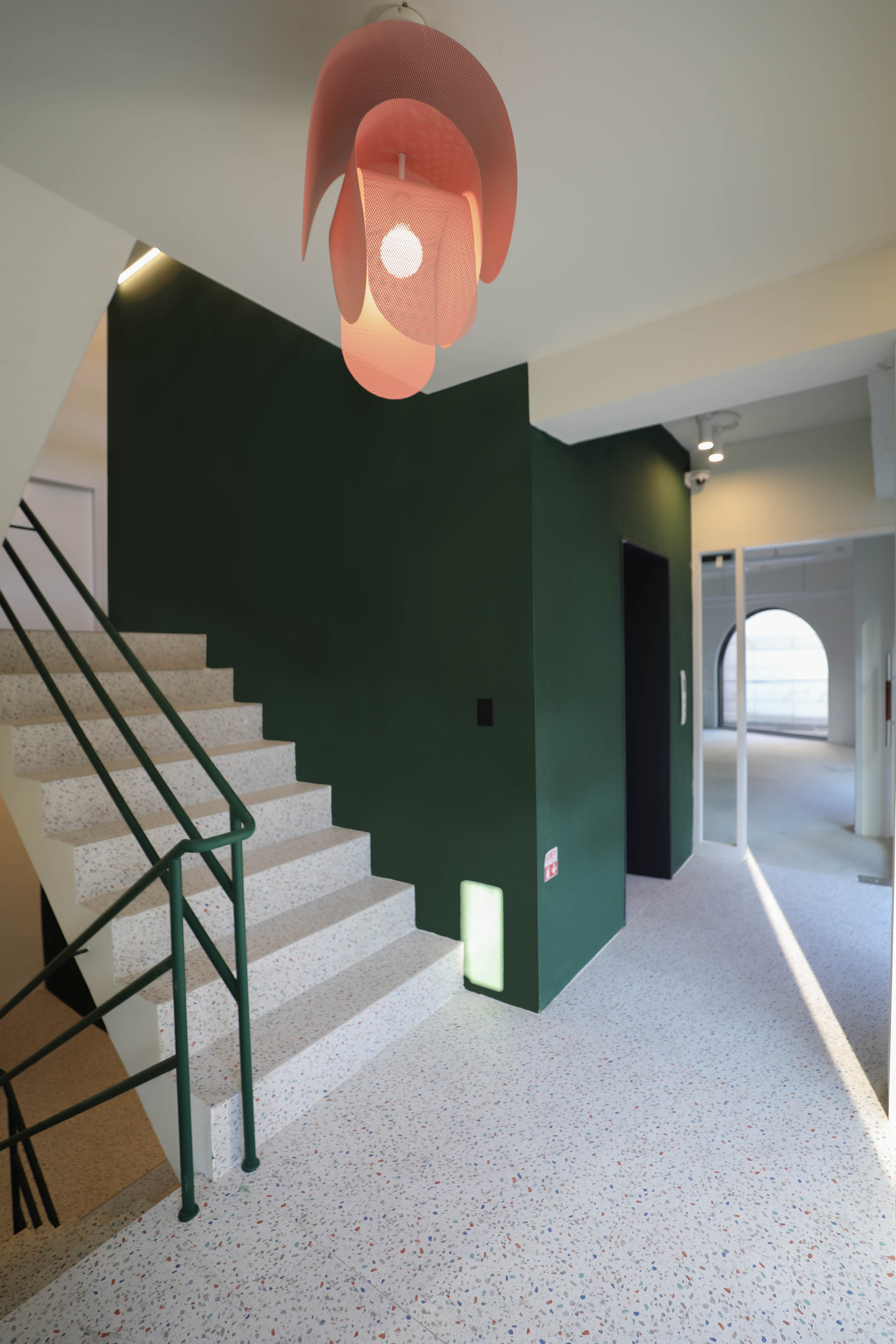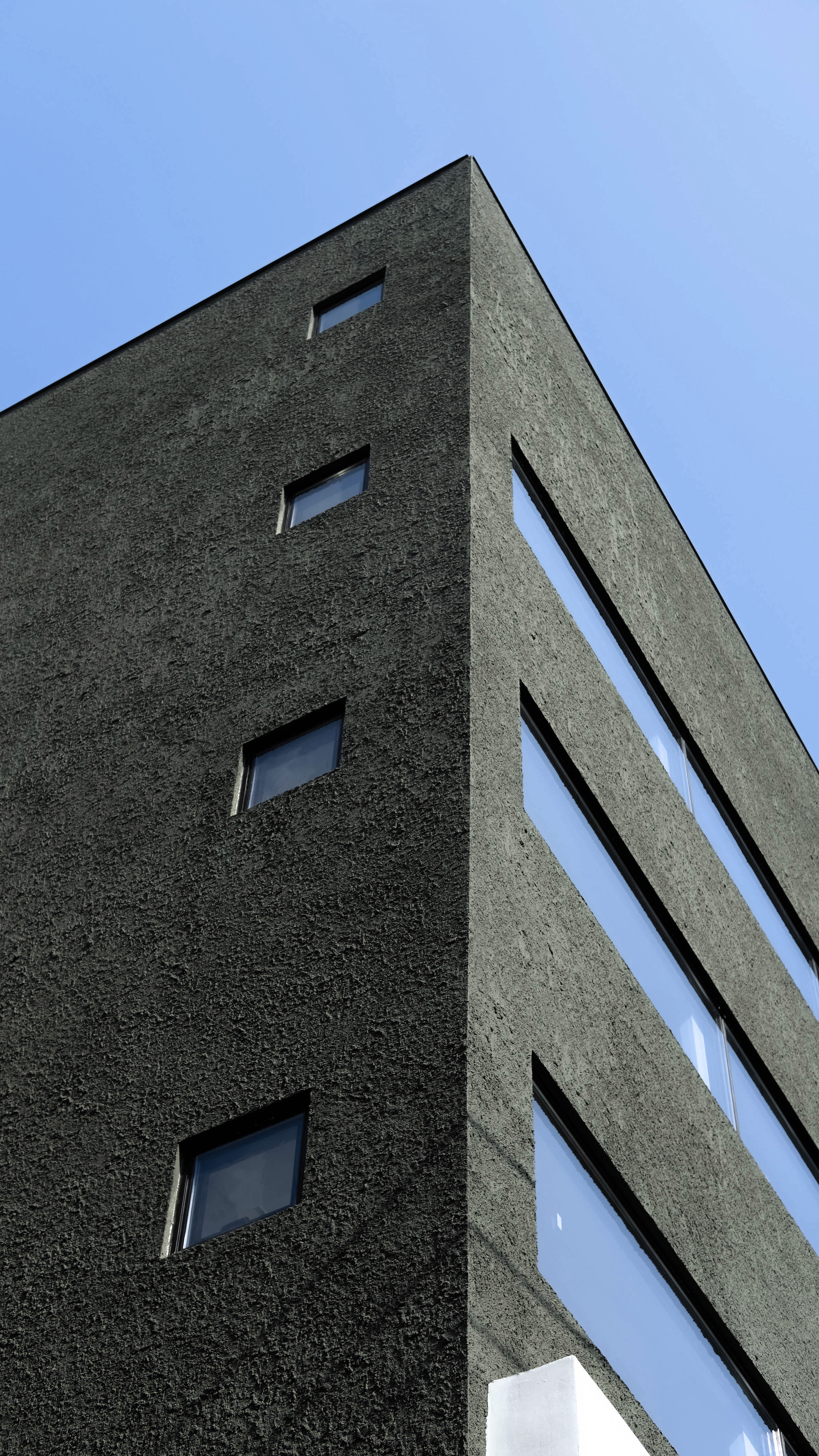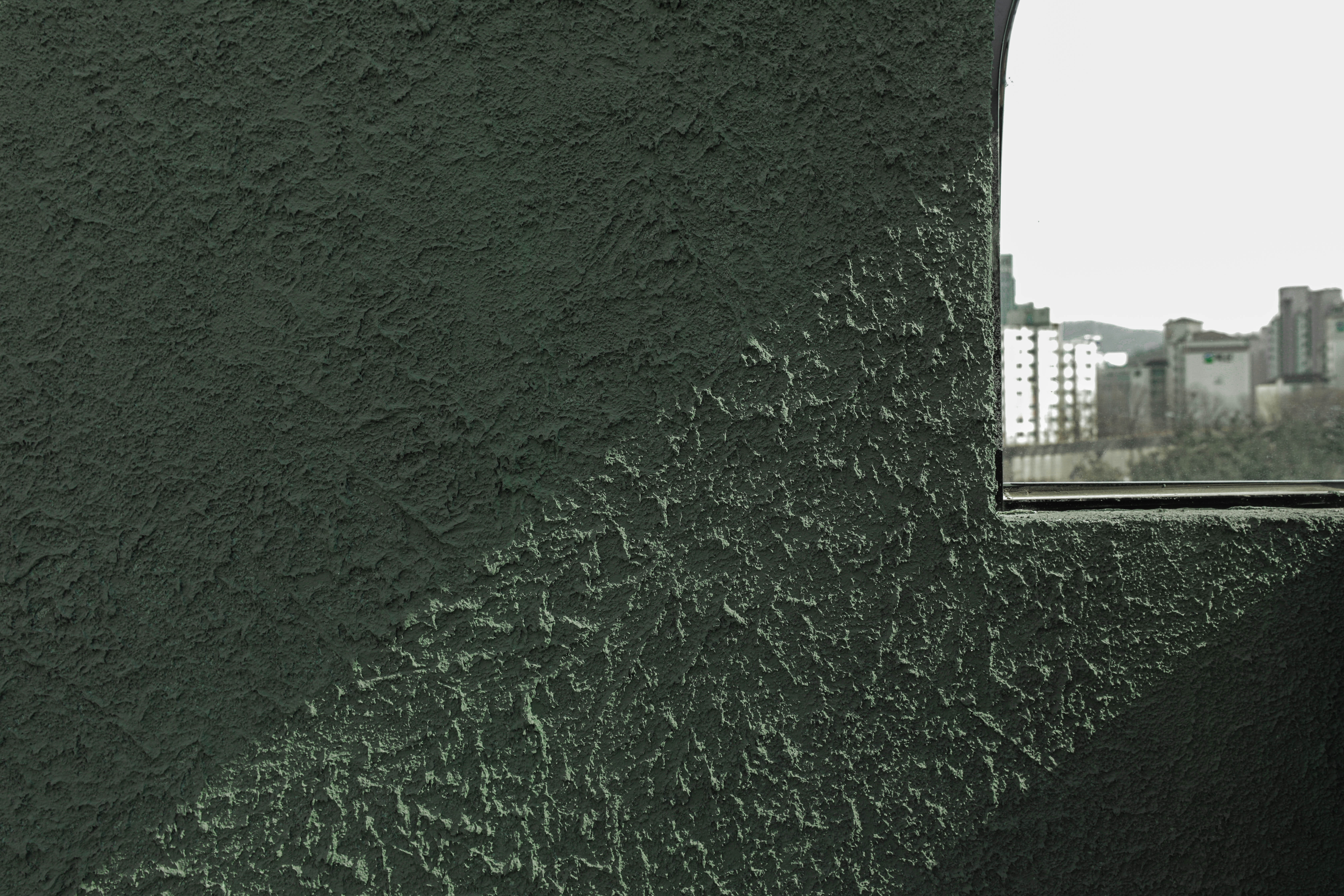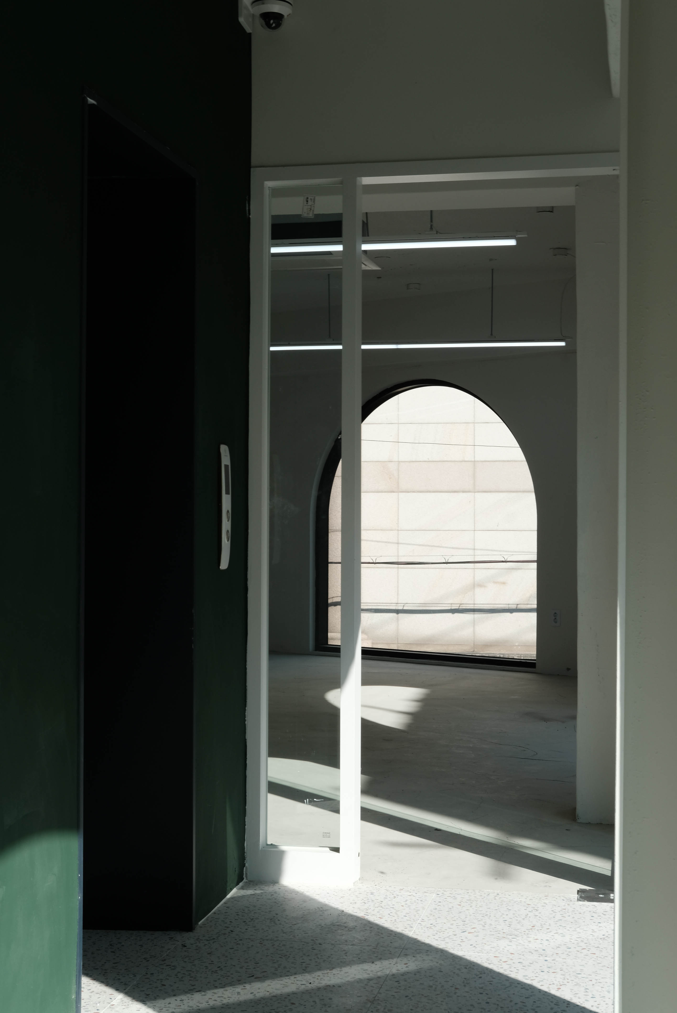 왕복 8차선 이면 도로변에 위치한 대상지는 상가블럭과 주거지 사이에 위치하고 있다. 86년 사용승인을 받은 기존 건물은 주변에서 흔히 볼 수 있는 3층 규모의 상가건물이었다. 건축주는 임대를 위한 상가건물로서 우선 거리에서 확실히 인지가 되는 외관이었으면 했고, 눈에 띄지만 단정한 형태의 건물을 요청했다. 기존 건물을 유지하면서 새로운 인상을 만들 수 있는 백색 알루미늄 펀칭패널을(물결무늬 단면) 제안했으나 예산의 문제로 진행하지 못했다. 다음으로 제안한 재료는 종석미장으로 알루미늄 펀칭패널과는 완전히 다른 물성을 가진 재료다. 매우 거친 마감으로 묵직한 매스감을 잘 표현해 줄 수 있는 재료였다. 색상의 문제로 종석미장과 비슷한 텍스쳐를 갖는 스타코로 최종 결정되었다. 건물 이름에 어울리는 진한 녹색 단일톤의 건물은 아치 형태의 하부 창과 가로로 긴 상부 창의 대조를 통해 거리에서 강한 인상을 갖는 건물이 되었다.