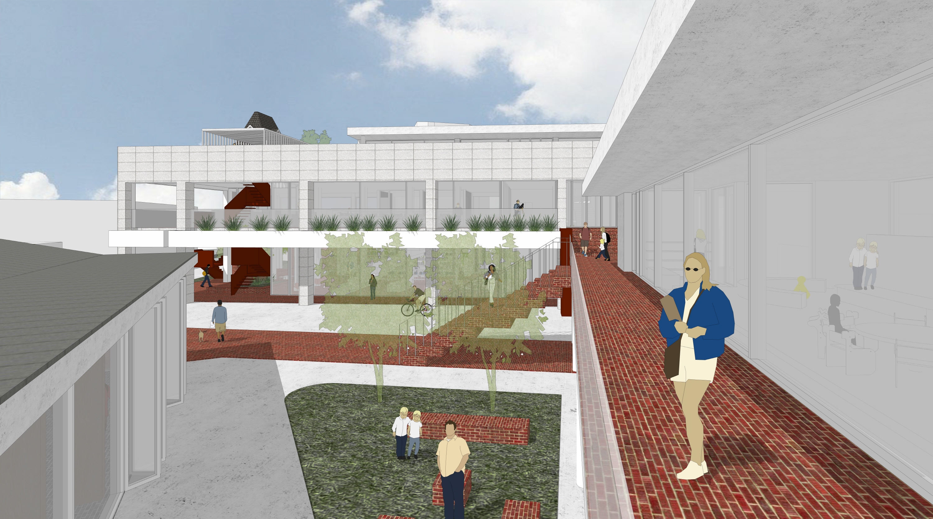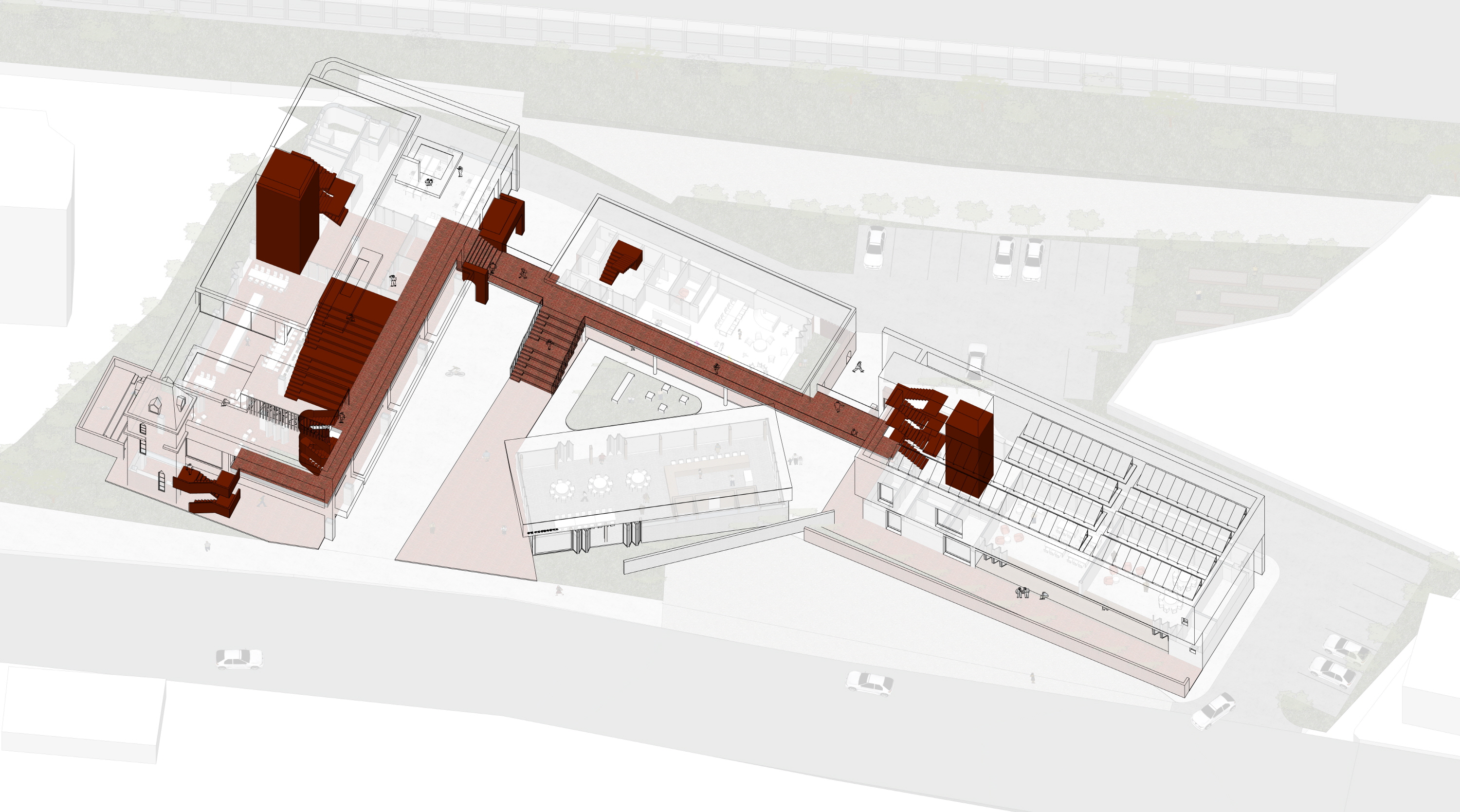 대상지는 소방서로 사용되었던 공간으로 기존건물은 리모델링하고 필요한 시설은 증축하여 주민생활복합 허브시설로 계획하는 설계공모전이다. 청소년시설, 영유아돌봄시설, 노인복지시설, 다문화 가정 지원시설 등 다양한 세대와 연령층이 사용하는 공간으로 부정형의 대지에 상응하는 분절된 매스로 작은 마을과 같은 공간으로 계획하고자 하였다. 기존 소방서의 외형은 최대한 보전하여 기존 대상지의 기억을 보존하고 일부 철거를 통해 외부공간을 내부로 확장하였고 건물간에 연속된 보행공간을 통해 마을을 거니는 경험을 담고자 하였다.